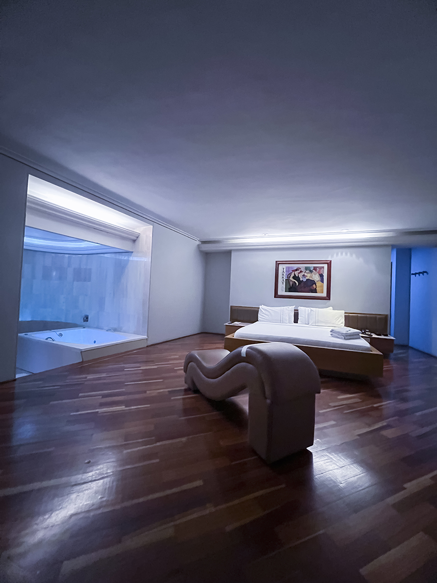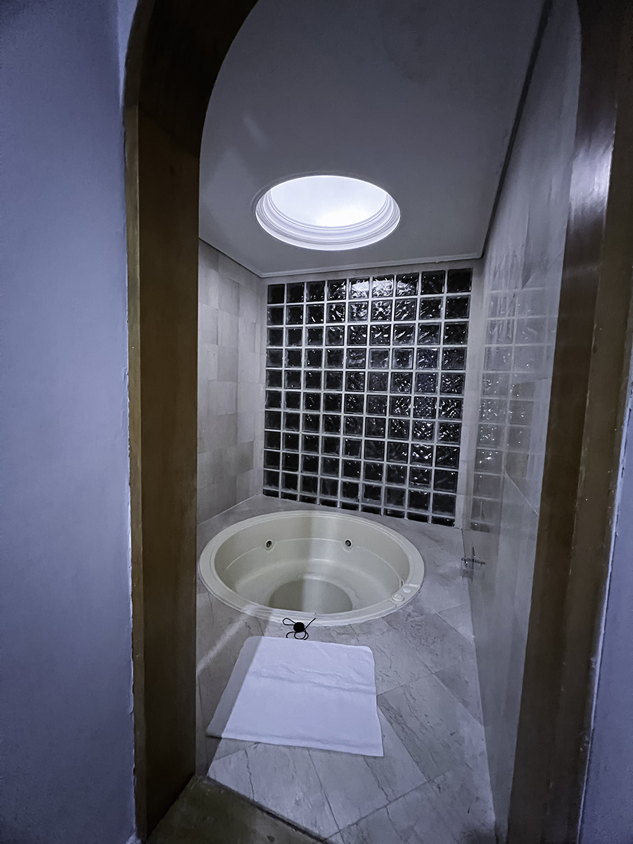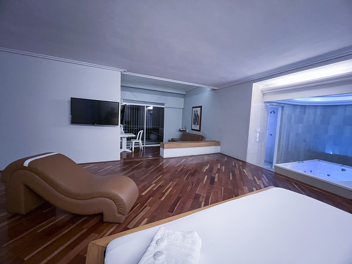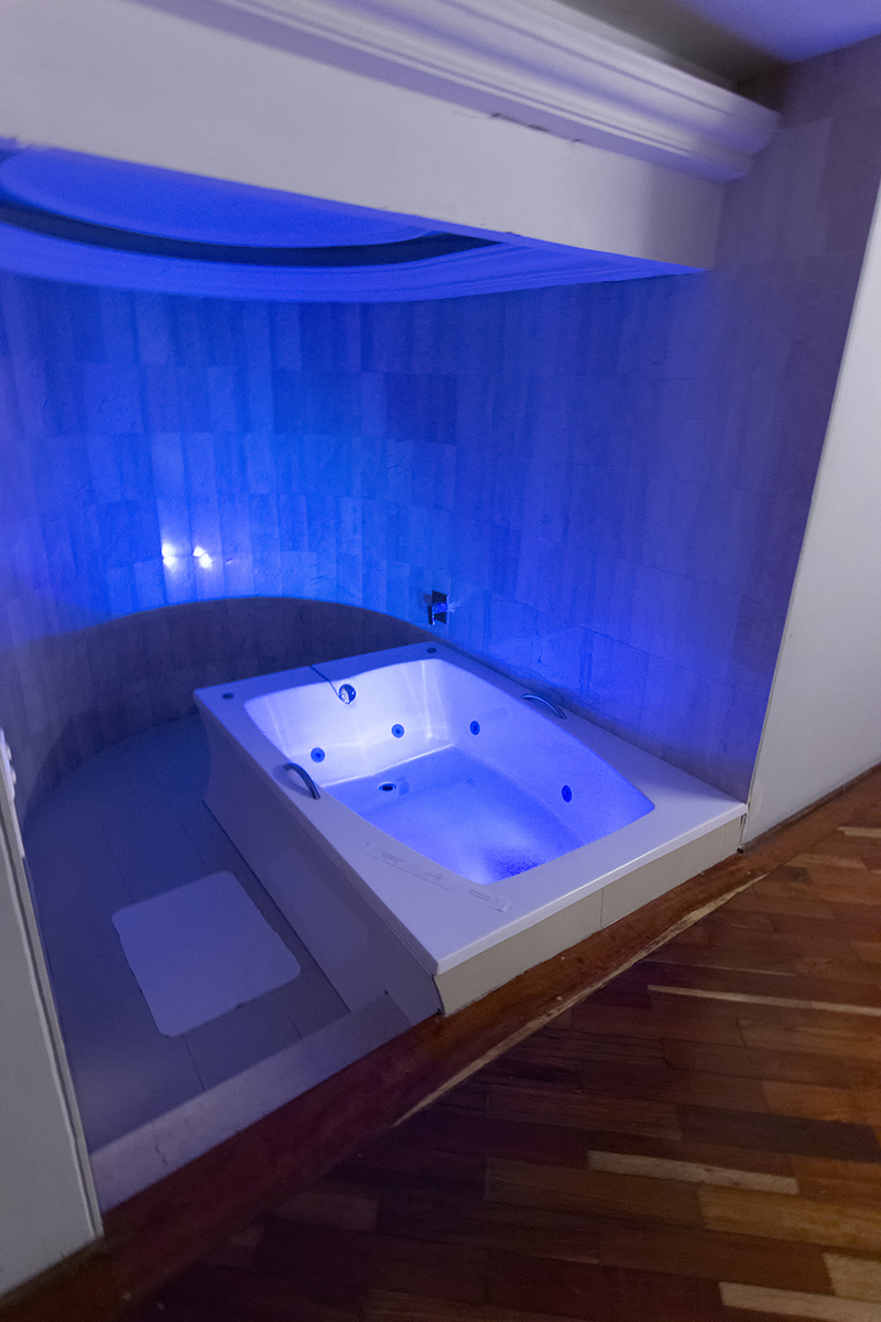 Turco y Jacuzzi con hidromasajes y cromoterapia disponible en la suite moto y vehículo.